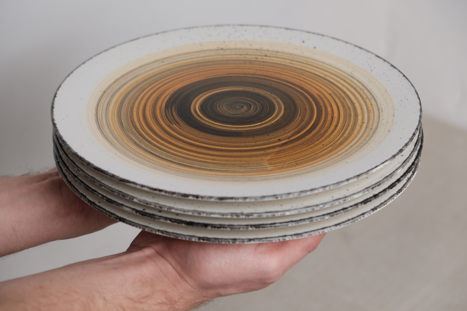 Kvaliteten in ročno poslikan keramični plitvi krožnik narejen iz visokotemperaturne ali “stoneware” gline in primeren za uporabo v mikrovalovni pečici ter pomivanju v pomivalnem stroju.