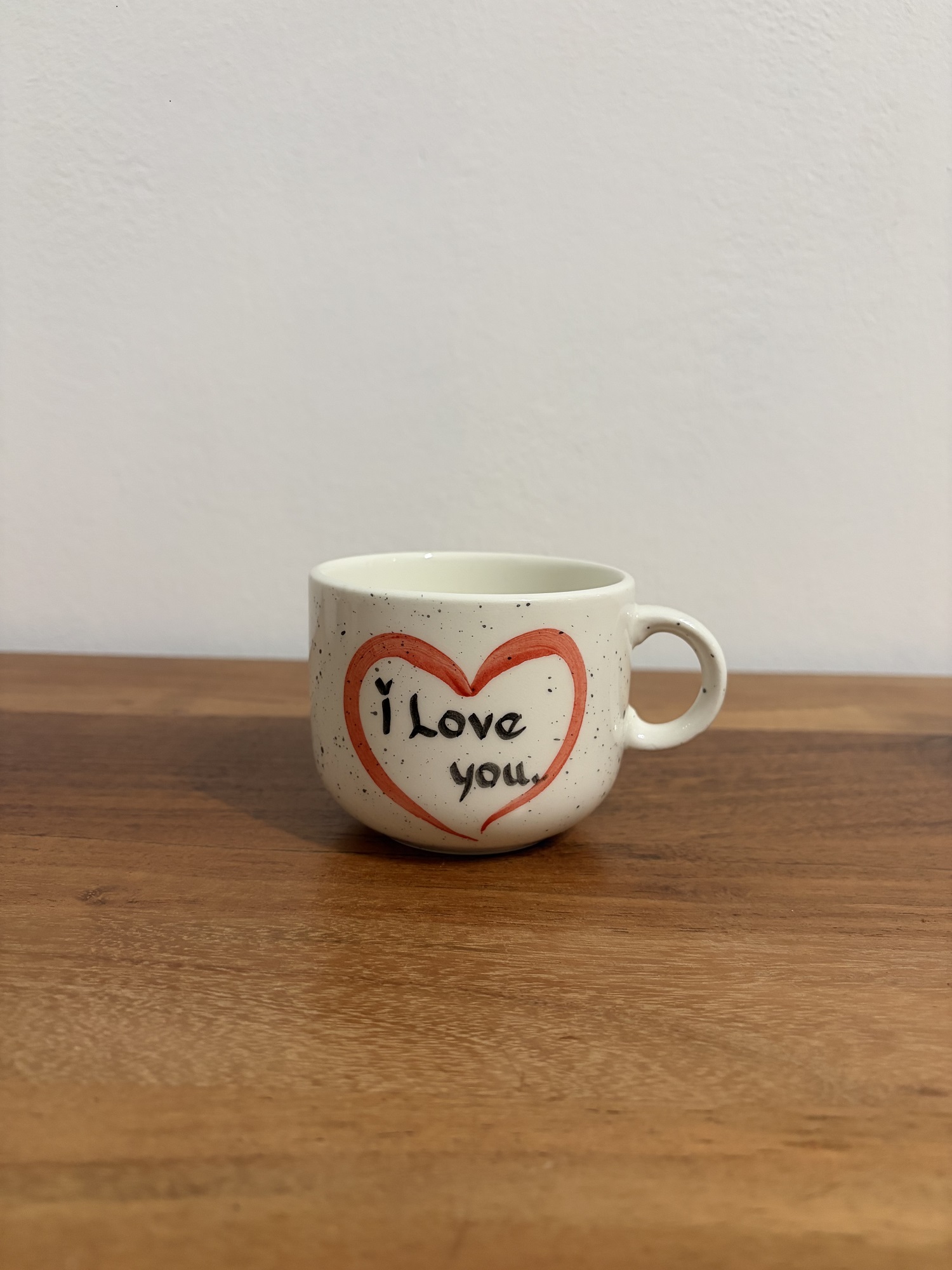 Ročno poslikan lonček iz bele gline, primeren za uporabo v pomivalnem stroju in mikrovalovni pečici.