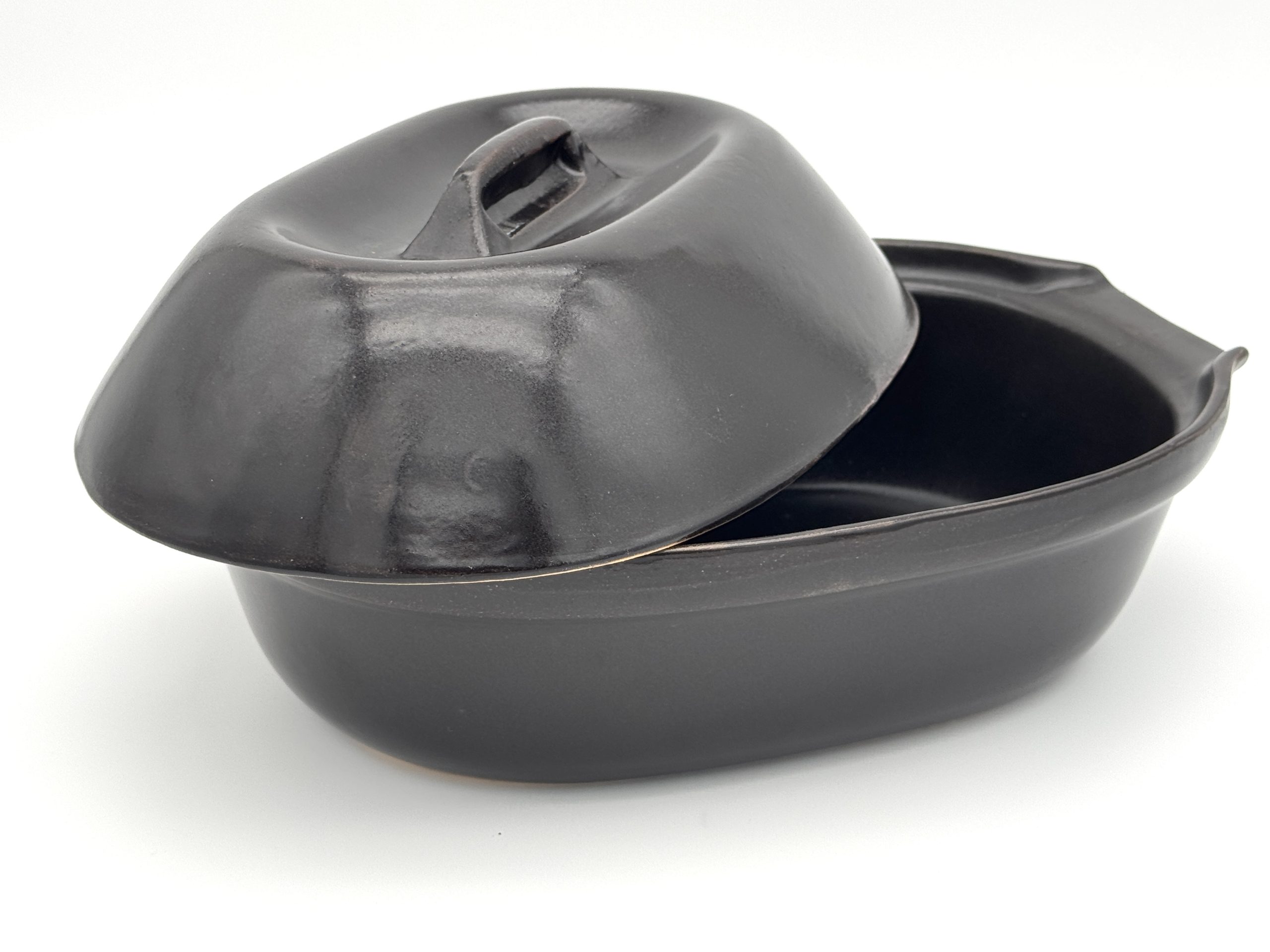 Keramičen pekač s pokrovom narejen iz “stoneware” ali visokotemperaturne in ognjevzdržne gline primeren za uporabo v električni pečici, krušni peči ali odprtem ognju ter pomivanju v pomivalnem stroju. Glina z enakomerno in postopno porazdelitvije toplote po pekaču poskrbi za izmenjavo okusa, krepi aromo in daje poseben okus vsej hrani ter poskrbi za to, da osten hrana dlje časa topla. Ergonomsko oglikovani ročaji za lažje in varno prenašanje pekača. Odporen na praske in ureznine kar pomeni, da lahko brez zadržkov z noži, vilicami ali drugimi kuhinjskimi pripomočki režete v pekaču in pripravljeno jed vzamete iz pekača.