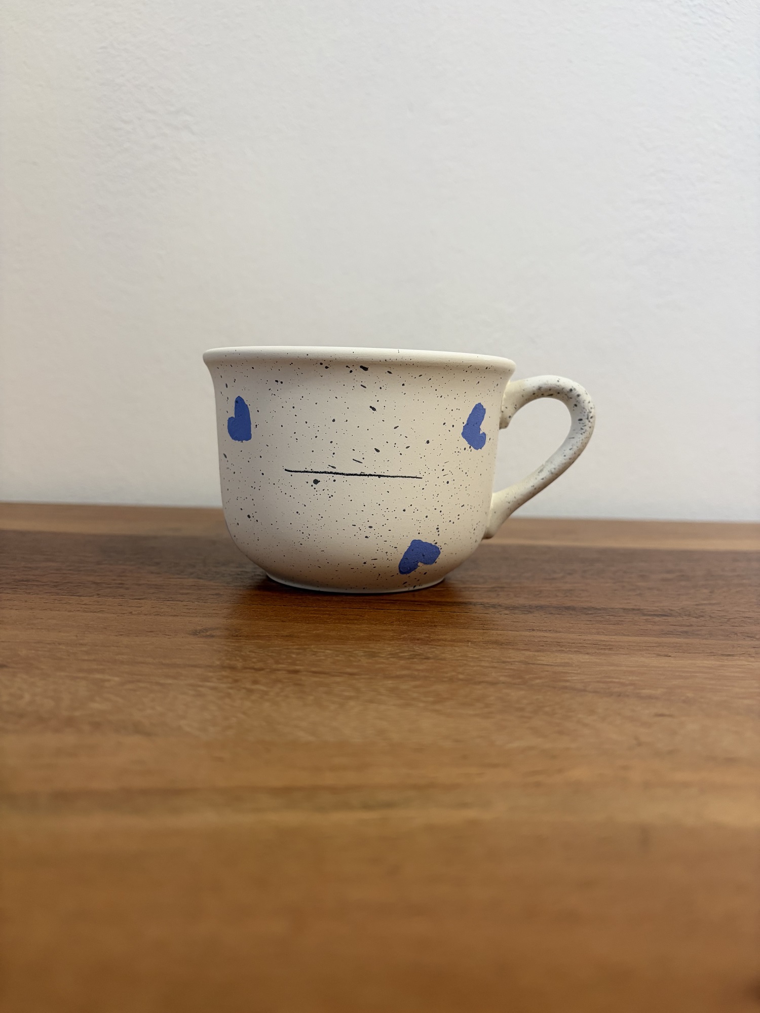 Ročno poslikan personaliziran lonček iz bele gline, primeren za uporabo v pomivalnem stroju in mikrovalovni pečici.
